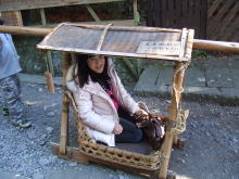 鉋(かんな)削り。右の棒を引っ張ると削っているように人が動きます。 |