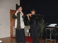| 最初は弟子の柴田さんと。あとは一人で数曲演奏しました。左は尺八、右は一節切(ひとよぎり)です。 |
